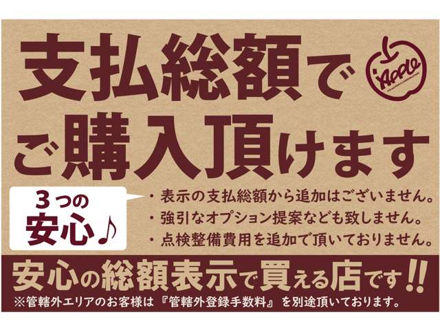 当店指定工場において、まずは基本となる法定12ヶ月点検と併せ、不良箇所などがあれば整備も充分に行なってから、お客様へ納車とさせて頂いております。(※掲載しておりますお支払い総額には、この整備費用も含まれております。)