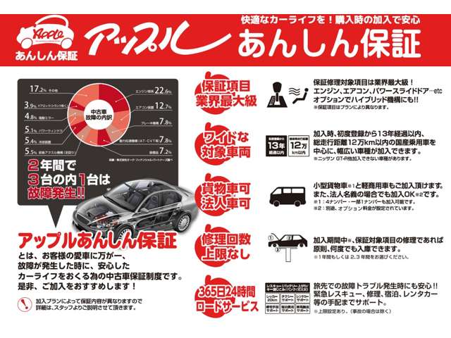 正規ディーラでの法定12ケ月点検を実施しメーカー保証の継承を行います。全国ディーラーでの保証修理が可能になり新車同等のサービスが受けられ安心してお乗り頂けます。