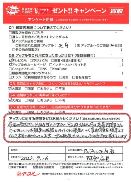 今回の売却で4回目なのですが、そのうち3回が今の店長阿部さんでした。