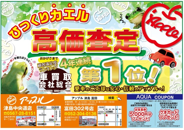 お車のご相談・ 査定だけでもOK! カンタン 入力 30秒 アップルがブランド買取始めました! お電話でも受付中! 受付時間10:00 ~ 19:00 0567-28-8151 お車のご相談・ 査定だけでもOK! カンタン 入力 30秒 アップルがブランド買取始めました! お電話でも受付中! 受付時間10:00 ~ 19:00 0567-28-8151 アップルがブランド買取始めました! お電話でも受付中! 受付時間10:00 ~ 19:00 0567-28-8151 店舗情報 在庫車 スタッフ紹介 ブログ お客様の声 キャンペーン 無料査定 click 最新記事一覧 月別アーカイブ 2026年04月(17)2026年03月(27)2026年02月(24)2026年01月(23)2025年12月(23)2025年11月(27)2025年10月(26)2025年09月(26)2025年08月(21)2025年07月(26)2025年06月(26)2025年05月(21)2025年04月(24)2025年03月(27)2025年02月(24)2025年01月(23)2024年12月(23)2024年11月(26)2024年10月(26)2024年09月(26)2024年08月(21)2024年07月(26)2024年06月(26)2024年05月(23)2024年04月(22)2024年03月(27)2024年02月(25)2024年01月(23)2023年12月(23)2023年11月(25)2023年10月(27)2023年09月(26)2023年08月(21)2023年07月(27)2023年06月(26)2023年05月(22)2023年04月(25)2023年03月(26)2023年02月(24)2023年01月(25)2022年12月(24)2022年11月(25)2022年10月(27)2022年09月(26)2022年08月(21)2022年07月(27)2022年06月(25)2022年05月(22)2022年04月(26)2022年03月(26)2022年02月(24)2022年01月(24)2021年12月(22)2021年11月(26)2021年10月(27)2021年09月(25)2021年08月(22)2021年07月(27)2021年06月(25)2021年05月(23)2021年04月(25)2021年03月(26)2021年02月(24)2021年01月(23)2020年12月(23)2020年11月(26)2020年10月(27)2020年09月(24)2020年08月(22)2020年07月(24)2020年06月(25)2020年05月(21)2020年04月(23)2020年03月(26)2020年02月(24)2020年01月(22)2019年12月(21)2019年11月(24)2019年10月(24)2019年09月(22)2019年08月(19)2019年07月(16)2019年06月(18)2019年05月(16)2019年04月(9)2019年03月(4)2019年02月(6)2019年01月(2)2018年12月(3)2018年11月(4)2018年10月(21)2018年09月(25)2018年08月(22)2018年07月(27)2018年06月(24)2018年05月(23)2018年04月(25)2018年03月(27)2018年02月(22)2018年01月(24)2017年12月(23)2017年11月(23)2017年10月(22)2017年09月(23)2017年08月(21)2017年07月(18)2017年06月(12)2017年05月(10)2017年04月(10)2017年03月(7)2017年02月(8)2017年01月(12)2016年12月(12)2016年11月(12)2016年10月(10)2016年09月(17)2016年08月(19)2016年07月(21)2016年06月(5)2016年05月(6)2016年04月(4)2016年03月(4)2016年02月(3)2016年01月(6)2015年12月(6)2015年11月(6)2015年10月(7)2015年09月(8)2015年08月(8)2015年07月(7)2015年06月(6)2015年05月(6)2015年04月(6)2015年03月(6)2015年02月(4)2015年01月(7)2014年12月(7)2014年11月(5)2014年10月(6)2014年09月(8)2014年08月(10)2014年07月(9)2014年06月(12)2014年05月(13)2014年04月(8)2014年03月(3)2014年02月(4)2014年01月(4)2013年12月(4)2013年11月(5)2013年10月(4)2013年09月(2)2013年08月(1) 2161-2170/2773件中 [ 未分類 ] 2018/06/02(土) 12:04 GIFU~☆彡 みなさまこんにちは!!本日もアップル津島中央道店ブログをご覧いただきありがとうございます♪最近こんがり日焼け気味の村上です♫私先日岐阜県の郡上八幡に行って参りました!!初めて伺ったのですが、水が非常に綺麗な街でした(゚∀゚)☆彡小さいころから海や川や用水路などなど水際が大好きな… [ 未分類 ] 2018/06/01(金) 13:51 営業時間 皆様こんにちは!安井でございます!本日より6月スタート(^◇^)昨日は土砂降りの雨でしたが、本日は気持ちよい晴れ(^◇^)さて営業時間のお知らせになります!本日6月1日は社内研修の為18時迄の営業となります!ご来店の際にはお気を付けくださいませ!さらに6月19日(火)は臨時休業となります。ご… [ 未分類 ] 2018/05/31(木) 14:45 優雅に 皆様こんにちは!安井でございます(^^)/本日5月最終日!明日からもう6月です!早いですね~まずお知らせ事になります!6月の営業日についてお知らせ致します!①6月1日(金)社内研修の為18時迄の営業となります②6月19日(火)は臨時休業とさせて頂きます。この2つがお知らせとなります。ご迷惑お… [ 未分類 ] 2018/05/29(火) 11:20 お子様連れでも安心下さいませ! 皆様こんにちは(^^♪アップル津島中央道店のブログをご覧頂きありがとうございます!m(__)m連日沢山のご来店に心より感謝致します!!m(__)mお電話にてお問い合わせ頂く内容となりますが、『子供も一緒に行くけど大丈夫?』(*´ω`*)ご丁寧にお気遣い頂き誠にありがと… [ 未分類 ] 2018/05/28(月) 11:35 お客様の声 皆様こんにちは!安井でございます!土日共に多くの皆様のご来店頂き感謝致しますm(__)m引き続きスタッフ一同お待ちしております!さて今回はお客様の声です!当店はHP上で皆様から頂きましたお客様からの声を一部ご紹介させて頂いてます本当に日々の励みになっております!ありがとうございます!!当店H… [ 未分類 ] 2018/05/27(日) 18:13 最終 皆様こんにちは!安井でございます!本日も5月最終の日曜日という事で多くの皆様にご来店頂き感謝致しますm(__)m本日は7時までの営業となりますが、どしどし皆様のご来店お待ちしております!引き続きキャンペーンも実施中です(*^^*)当店限定キャンペーンや地域情報誌AQUAのクーポンなどなど当店… [ 未分類 ] 2018/05/26(土) 08:25 ありがとうございます! 皆様こんにちは!(^^)!アップル津島中央道店のブログをご覧頂きありがとうございます!いよいよ暑さがやってまいりましたね^^;;まだまだ体が慣