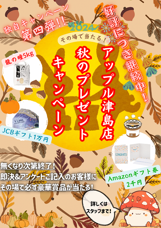 お車のご相談・ 査定だけでもOK! カンタン 入力 30秒 アップルがブランド買取始めました! お電話でも受付中! 受付時間10:00 ~ 19:00 0567-28-8151 お車のご相談・ 査定だけでもOK! カンタン 入力 30秒 アップルがブランド買取始めました! お電話でも受付中! 受付時間10:00 ~ 19:00 0567-28-8151 アップルがブランド買取始めました! お電話でも受付中! 受付時間10:00 ~ 19:00 0567-28-8151 店舗情報 在庫車 スタッフ紹介 ブログ お客様の声 キャンペーン 無料査定 click 最新記事一覧 月別アーカイブ 2026年04月(17)2026年03月(27)2026年02月(24)2026年01月(23)2025年12月(23)2025年11月(27)2025年10月(26)2025年09月(26)2025年08月(21)2025年07月(26)2025年06月(26)2025年05月(21)2025年04月(24)2025年03月(27)2025年02月(24)2025年01月(23)2024年12月(23)2024年11月(26)2024年10月(26)2024年09月(26)2024年08月(21)2024年07月(26)2024年06月(26)2024年05月(23)2024年04月(22)2024年03月(27)2024年02月(25)2024年01月(23)2023年12月(23)2023年11月(25)2023年10月(27)2023年09月(26)2023年08月(21)2023年07月(27)2023年06月(26)2023年05月(22)2023年04月(25)2023年03月(26)2023年02月(24)2023年01月(25)2022年12月(24)2022年11月(25)2022年10月(27)2022年09月(26)2022年08月(21)2022年07月(27)2022年06月(25)2022年05月(22)2022年04月(26)2022年03月(26)2022年02月(24)2022年01月(24)2021年12月(22)2021年11月(26)2021年10月(27)2021年09月(25)2021年08月(22)2021年07月(27)2021年06月(25)2021年05月(23)2021年04月(25)2021年03月(26)2021年02月(24)2021年01月(23)2020年12月(23)2020年11月(26)2020年10月(27)2020年09月(24)2020年08月(22)2020年07月(24)2020年06月(25)2020年05月(21)2020年04月(23)2020年03月(26)2020年02月(24)2020年01月(22)2019年12月(21)2019年11月(24)2019年10月(24)2019年09月(22)2019年08月(19)2019年07月(16)2019年06月(18)2019年05月(16)2019年04月(9)2019年03月(4)2019年02月(6)2019年01月(2)2018年12月(3)2018年11月(4)2018年10月(21)2018年09月(25)2018年08月(22)2018年07月(27)2018年06月(24)2018年05月(23)2018年04月(25)2018年03月(27)2018年02月(22)2018年01月(24)2017年12月(23)2017年11月(23)2017年10月(22)2017年09月(23)2017年08月(21)2017年07月(18)2017年06月(12)2017年05月(10)2017年04月(10)2017年03月(7)2017年02月(8)2017年01月(12)2016年12月(12)2016年11月(12)2016年10月(10)2016年09月(17)2016年08月(19)2016年07月(21)2016年06月(5)2016年05月(6)2016年04月(4)2016年03月(4)2016年02月(3)2016年01月(6)2015年12月(6)2015年11月(6)2015年10月(7)2015年09月(8)2015年08月(8)2015年07月(7)2015年06月(6)2015年05月(6)2015年04月(6)2015年03月(6)2015年02月(4)2015年01月(7)2014年12月(7)2014年11月(5)2014年10月(6)2014年09月(8)2014年08月(10)2014年07月(9)2014年06月(12)2014年05月(13)2014年04月(8)2014年03月(3)2014年02月(4)2014年01月(4)2013年12月(4)2013年11月(5)2013年10月(4)2013年09月(2)2013年08月(1) 481-490/2773件中 [ 未分類 ] 2024/09/07(土) 10:23 ~からあげ~ 皆様おはようございます🌞🌞🌞本日の津島の天気は晴天!!台風過ぎた後はカラッと涼しくなるのかな~とおもったのですが・・・暑すぎません???水分補給はこまめに行いましょう!さて今回のブログは~からあげ~デス。今回購入したのはからあげ専門店から助さん!ウマ塩を選択!!ご飯はもちろん大盛り~~~大… [ 未分類 ] 2024/09/06(金) 11:33 絶対オイシイヤ~ツ! アップル津島中央道店のブログをご覧の皆様こんにちはアドバイザーの齋藤です!まだまだアッチッチな日が続いております!熱中症には十分に注意して参りましょう!さて先日スターバックスさんへ行き新作を注文!「焼き芋香ばしカラメルフラペチーノ」(Webより)そうです!!これです!!!(早く飲みたくてブレ… [ 未分類 ] 2024/09/05(木) 10:34 ダイスキナヤ~ツ! アップル津島中央道店のブログをご覧の皆様こんにちはアドバイザーの齋藤です!本日の最高気温は35ド?猛暑日の再来ですね!?!?水分などしっかりと摂取して熱中症対策をして参りましょう!さて先日大好きな「歌志軒」さんへGo!!!(Webより)いつもは大盛の所を今回は「倍盛」を注文!(焼豚丼もセット… [ 未分類 ] 2024/09/03(火) 10:04 お知らせとお知らせ!!! アップル津島中央道店のブログをご覧の皆様こんにちはアドバイザーの齋藤です!まだまだジメジメ感があります!引き続き熱中症には注意して参りましょう!!!さて今回は好評につき継続キャンペーンの~お知らせ①~即決にてご成約&アンケートへのご記入にご協力頂いたお客様へ豪華賞品をその場でプレゼント!!!… [ 未分類 ] 2024/09/02(月) 10:47 おめでとうございます☆彡 アップル津島中央道店のブログをご覧の皆様!こんにちは!!店長の山口です☆彡昨日までの土日も天候不安定な中沢山のお客様にご来店頂きました!ありがとうございますm(__)mそんな中当店の独自キャンペーンにて景品をゲットして頂いたお客様をご紹介♪♪T様!!☆JCBギフト券☆大変喜んで頂きました(*… [ 未分類 ] 2024/09/01(日) 10:14 ~成約で当たる!査定でもらえる!ダブルでチャンスな買取MAXキャンペーン開催中!!~ 皆様おはようございます🌞🌞🌞本日の津島の天気は曇り!!!パラパラと雨が降っており台風も近づいてきているので注意が必要ですね!!!安全第一です!さて今回のブログはキャンペーンのご紹介!!!■期間2024年9月1日(日)~10月31日(木)■対象キャンペーン期間中の「買取ご成約者様」が対象となり… [ 未分類 ] 2024/08/31(土) 10:31 