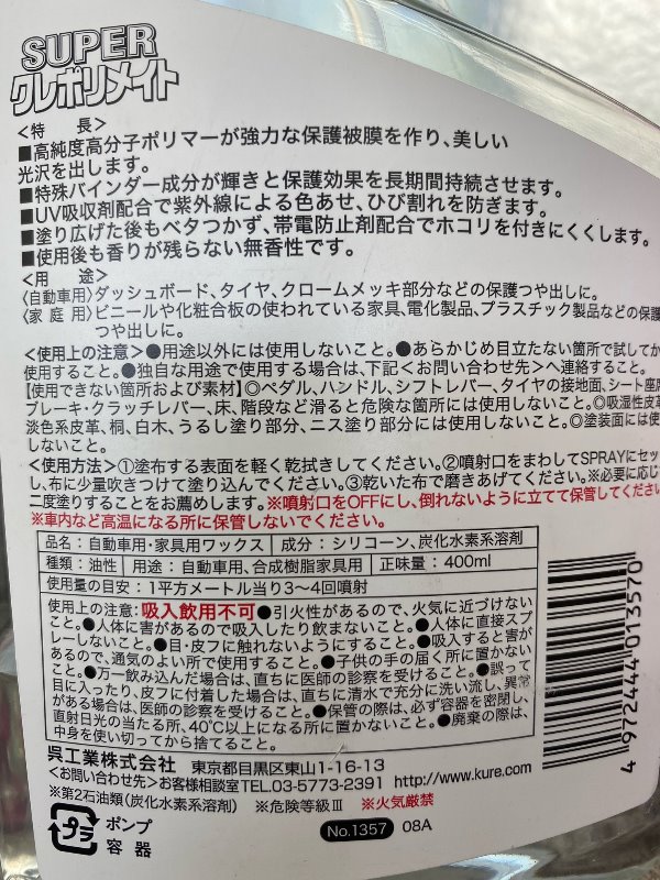 お車のご相談・ 査定だけでもOK! カンタン 入力 30秒 アップルがブランド買取始めました! お電話でも受付中! 受付時間10:00 ~ 19:00 0567-28-8151 お車のご相談・ 査定だけでもOK! カンタン 入力 30秒 アップルがブランド買取始めました! お電話でも受付中! 受付時間10:00 ~ 19:00 0567-28-8151 アップルがブランド買取始めました! お電話でも受付中! 受付時間10:00 ~ 19:00 0567-28-8151 店舗情報 在庫車 スタッフ紹介 ブログ お客様の声 キャンペーン 無料査定 click [ 未分類 ] 2021/11/05 (金) 11:21 ダッシュボードなどの艶出し&保護はコレ! 皆様おはようございます☀本日の津島の天気は晴天!!秋が来たとは思えない少し暑い日ですね・・・さて今回のブログは・・・『樹脂の艶出し&保護』です。やはり日の当たる時間が長いと色が褪せてしまう所ありますよね。そんな方にオススメです。呉工業さんから出ているスーパークレポリメイト!艶出し&保護はコレで十分です。私自身もヴォクシーの樹脂パーツに愛用してます(*´▽`*)内装&外装使用可能です!しかもめちゃくちゃ長持ち(*´ω`*)値段も高くなく容量もばっちりです。そして伸びが良い為少しの使用量でOKムラもほぼ出来ません(*^^*)カー用品店やホームセンター等にはほぼほぼ、おいてある商品になりますので一度、お試しください!!以上、柿本でした~~~ 2021-11-05 11:21:00 新しい記事へ 古い記事へ 最新記事 ゴールデン~~しまかぜ食堂さん~おしらせ!いっぱいとれるってよ!?~ハイウェイの堕天使~ 店舗情報に戻る 月別アーカイブ 2026年04月(19)2026年03月(27)2026年02月(24)2026年01月(23)2025年12月(23)2025年11月(27)2025年10月(26)2025年09月(26)2025年08月(21)2025年07月(26)2025年06月(26)2025年05月(21)2025年04月(24)2025年03月(27)2025年02月(24)2025年01月(23)2024年12月(23)2024年11月(26)2024年10月(26)2024年09月(26)2024年08月(21)2024年07月(26)2024年06月(26)2024年05月(23)2024年04月(22)2024年03月(27)2024年02月(25)2024年01月(23)2023年12月(23)2023年11月(25)2023年10月(27)2023年09月(26)2023年08月(21)2023年07月(27)2023年06月(26)2023年05月(22)2023年04月(25)2023年03月(26)2023年02月(24)2023年01月(25)2022年12月(24)2022年11月(25)2022年10月(27)2022年09月(26)2022年08月(21)2022年07月(27)2022年06月(25)2022年05月(22)2022年04月(26)2022年03月(26)2022年02月(24)2022年01月(24)2021年12月(22)2021年11月(26)2021年10月(27)2021年09月(25)2021年08月(22)2021年07月(27)2021年06月(25)2021年05月(23)2021年04月(25)2021年03月(26)2021年02月(24)2021年01月(23)2020年12月(23)2020年11月(26)2020年10月(27)2020年09月(24)2020年08月(22)2020年07月(24)2020年06月(25)2020年05月(21)2020年04月(23)2020年03月(26)2020年02月(24)2020年01月(22)2019年12月(21)2019年11月(24)2019年10月(24)2019年09月(22)2019年08月(19)2019年07月(16)2019年06月(18)2019年05月(16)2019年04月(9)2019年03月(4)2019年02月(6)2019年01月(2)2018年12月(3)2018年11月(4)2018年10月(21)2018年09月(25)2018年08月(22)2018年07月(27)2018年06月(24)2018年05月(23)2018年04月(25)2018年03月(27)2018年02月(22)2018年01月(24)2017年12月(23)2017年11月(23)2017年10月(22)2017年09月(23)2017年08月(21)2017年07月(18)2017年06月(12)2017年05月(10)2017年04月(10)2017年03月(7)2017年02月(8)2017年01月(12)2016年12月(12)2016年11月(12)2016年10月(10)2016年09月(17)2016年08月(19)2016年07月(21)2016年06月(5)2016年05月(6)2016年04月(4)2016年03月(4)2016年02月(3)2016年01月(6)2015年12月(6)2015年11月(6)2015年10月(7)2015年09月(8)2015年08月(8)2015年07月(7)2015年06月(6)2015年05月(6)2015年04月(6)2015年03月(6)2015年02月(4)2015年01月(7)2014年12月(7)2014年11月(5)2014年10月(6)2014年09月(8)2014年08月(10)2014年07月(9)2014年06月(12)2014年05月(13)2014年04月(8)2014年03月(3)2014年02月(4)2014年01月(4)2013年12月(4)2013年11月(5)2013年10月(4)2013年09月(2)2013年08月(1)