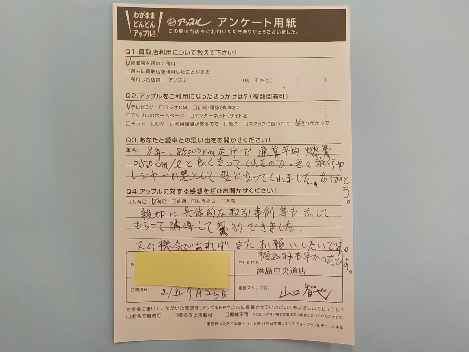 お車のご相談・ 査定だけでもOK! カンタン 入力 30秒 アップルがブランド買取始めました! お電話でも受付中! 受付時間10:00 ~ 19:00 0567-28-8151 お車のご相談・ 査定だけでもOK! カンタン 入力 30秒 アップルがブランド買取始めました! お電話でも受付中! 受付時間10:00 ~ 19:00 0567-28-8151 アップルがブランド買取始めました! お電話でも受付中! 受付時間10:00 ~ 19:00 0567-28-8151 店舗情報 在庫車 スタッフ紹介 ブログ お客様の声 キャンペーン 無料査定 click お客様の声 ご記入日: 2021/09/26 匿名様 車名:トヨタ カローラフィールダー フィールダー(カローラ) 親切に具体的な取引事例等も示してもらって、納得して契約できました。又の機会があればまたお願いしたいです。振り込みも早かったです。 前へ 次へ お客様の声一覧を見る