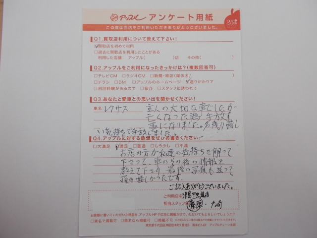 お車のご相談・ 査定だけでもOK! カンタン 入力 30秒 アップルがブランド買取始めました! お電話でも受付中! 受付時間10:00 ~ 19:00 0567-28-8151 お車のご相談・ 査定だけでもOK! カンタン 入力 30秒 アップルがブランド買取始めました! お電話でも受付中! 受付時間10:00 ~ 19:00 0567-28-8151 アップルがブランド買取始めました! お電話でも受付中! 受付時間10:00 ~ 19:00 0567-28-8151 店舗情報 在庫車 スタッフ紹介 ブログ お客様の声 キャンペーン 無料査定 click お客様の声 ご記入日: 2014/04/19 匿名様 お店の方が私たちの気持ちを分かって下さってっ車のその後の情報を教えて下さり、最後の写真も送って頂きうれしかったです。 前へ 次へ お客様の声一覧を見る