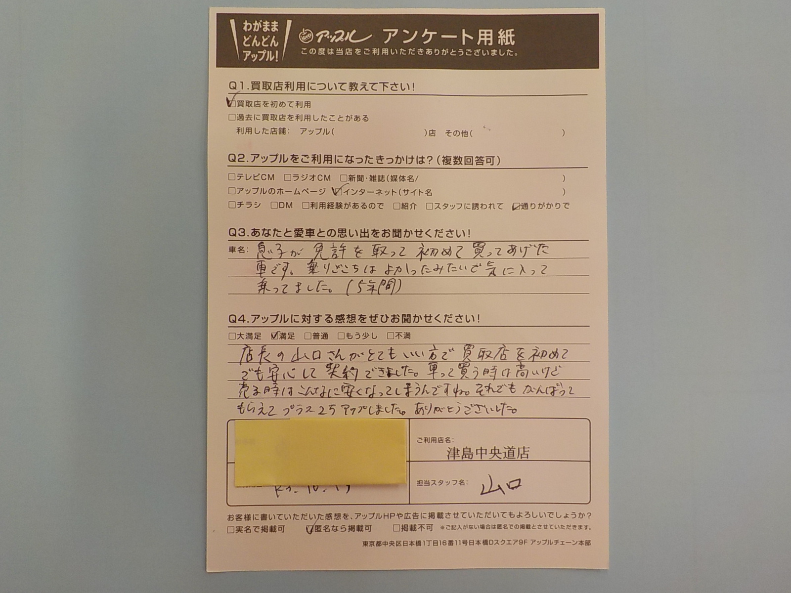 店長の山口さんがとてもいい方で買取店を初めてでも安心して契約できました。