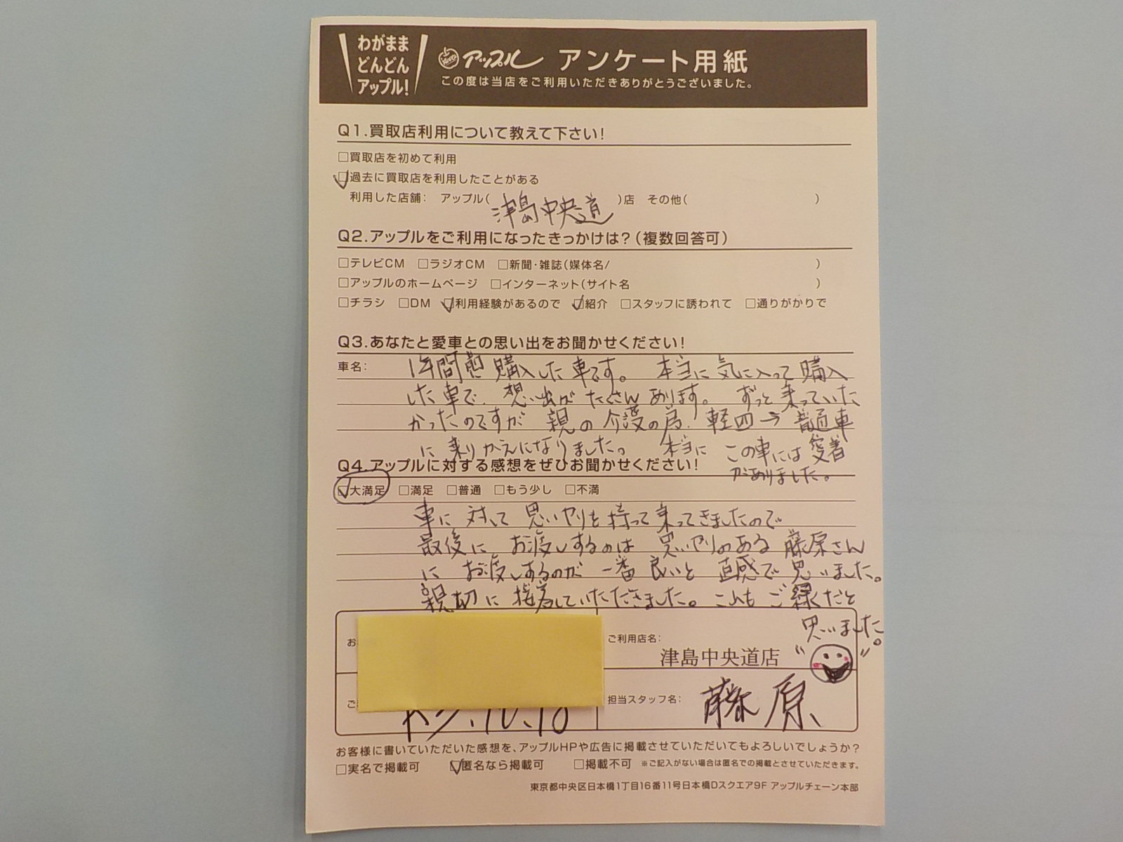 最後にお渡しするのは思いやりのある藤原さんにお渡しするのが一番良いと直感で思いました。