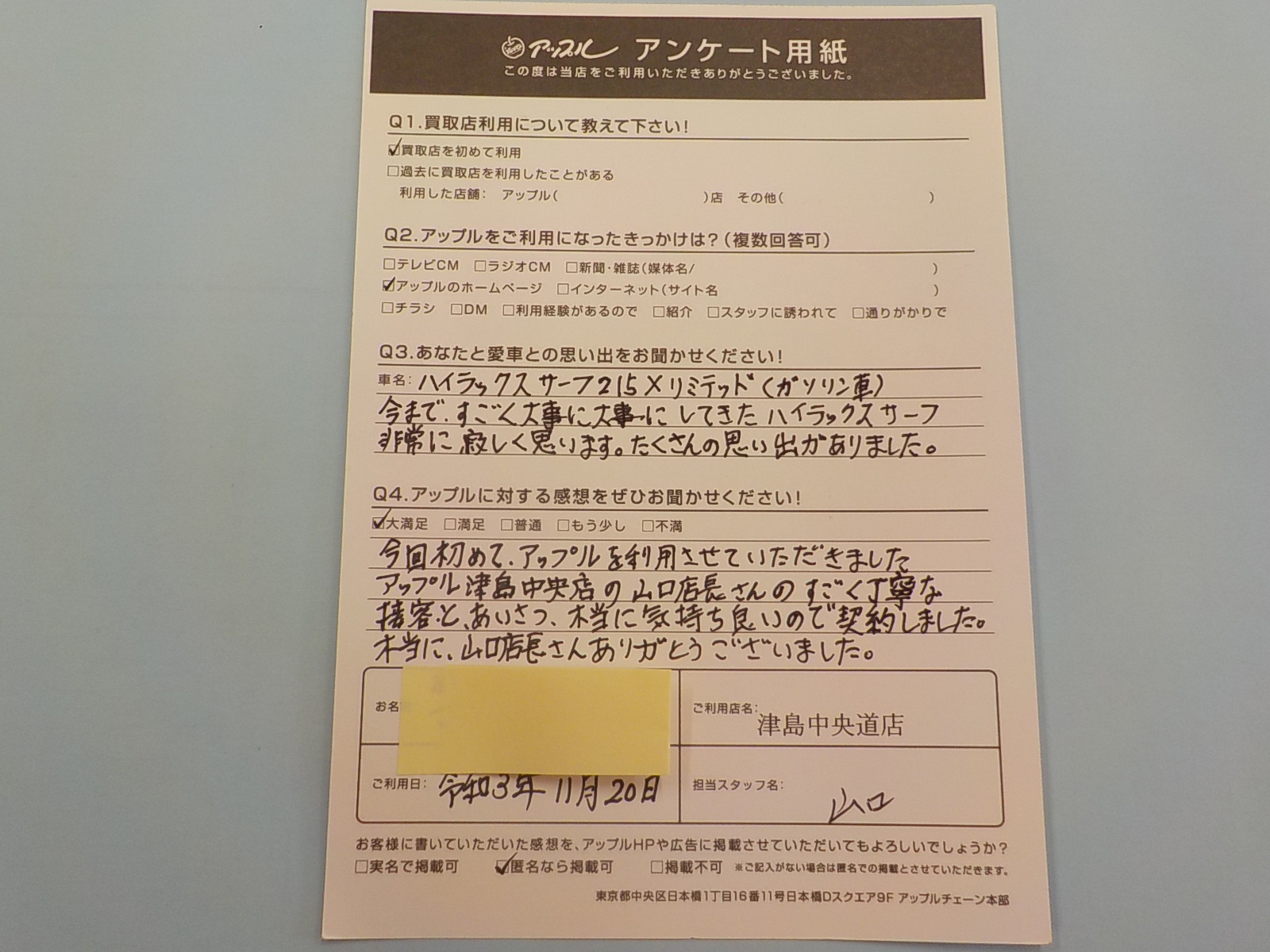 アップル津島中央店の山口店長さんのすごく丁寧な