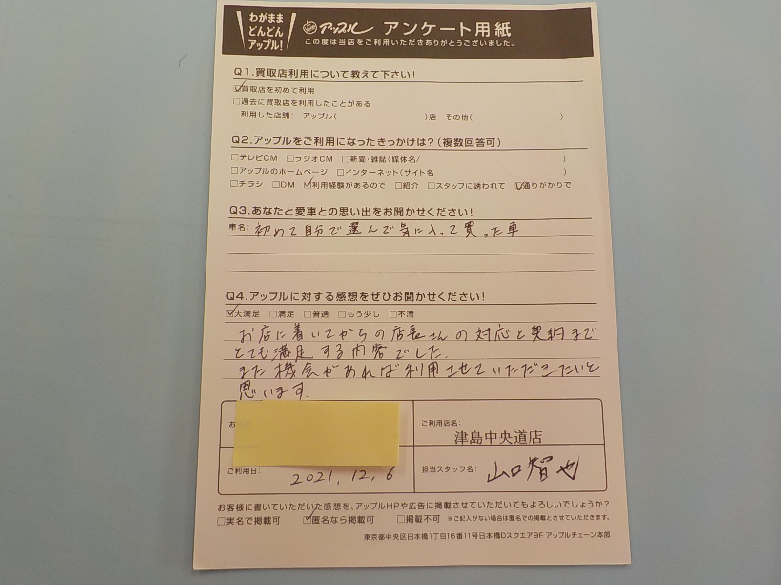 お車のご相談・ 査定だけでもOK! カンタン 入力 30秒 アップルがブランド買取始めました! お電話でも受付中! 受付時間10:00 ~ 19:00 0567-28-8151 お車のご相談・ 査定だけでもOK! カンタン 入力 30秒 アップルがブランド買取始めました! お電話でも受付中! 受付時間10:00 ~ 19:00 0567-28-8151 アップルがブランド買取始めました! お電話でも受付中! 受付時間10:00 ~ 19:00 0567-28-8151 店舗情報 在庫車 スタッフ紹介 ブログ お客様の声 キャンペーン 無料査定 click お客様の声 ご記入日: 2021/12/06 匿名様 お店に着いてからの店長さんの対応と契約までとても満足する内容でした。また機会があれば利用させていただきたいと思います。 前へ 次へ お客様の声一覧を見る