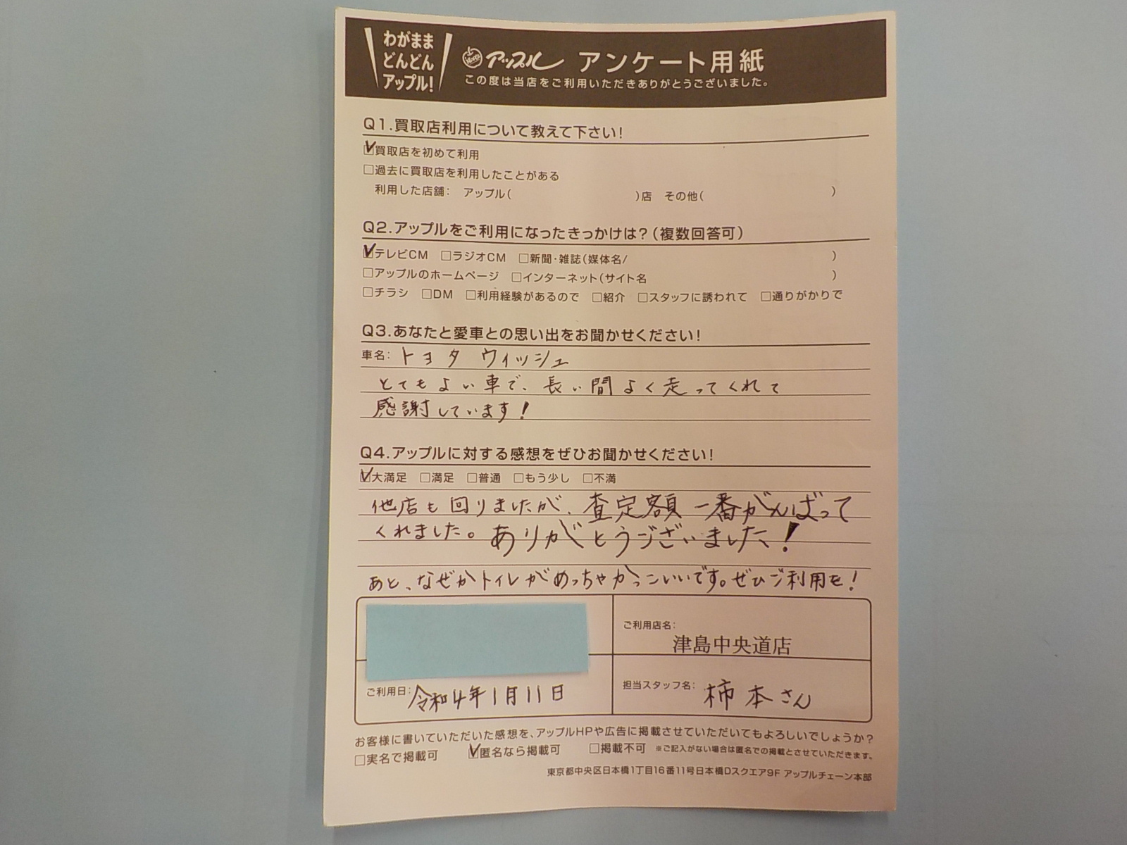 お車のご相談・ 査定だけでもOK! カンタン 入力 30秒 アップルがブランド買取始めました! お電話でも受付中! 受付時間10:00 ~ 19:00 0567-28-8151 お車のご相談・ 査定だけでもOK! カンタン 入力 30秒 アップルがブランド買取始めました! お電話でも受付中! 受付時間10:00 ~ 19:00 0567-28-8151 アップルがブランド買取始めました! お電話でも受付中! 受付時間10:00 ~ 19:00 0567-28-8151 店舗情報 在庫車 スタッフ紹介 ブログ お客様の声 キャンペーン 無料査定 click お客様の声 ご記入日: 2022/01/11 匿名(男性)様 車名:トヨタ ウィッシュ 他店も廻りましたが、査定額一番がんばってくれました。ありがとうございました!あと、なぜかトイレがめっちゃかっこいいです。ぜひご利用を! 前へ 次へ お客様の声一覧を見る