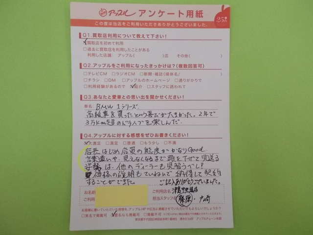 お車のご相談・ 査定だけでもOK! カンタン 入力 30秒 アップルがブランド買取始めました! お電話でも受付中! 受付時間10:00 ~ 19:00 0567-28-8151 お車のご相談・ 査定だけでもOK! カンタン 入力 30秒 アップルがブランド買取始めました! お電話でも受付中! 受付時間10:00 ~ 19:00 0567-28-8151 アップルがブランド買取始めました! お電話でも受付中! 受付時間10:00 ~ 19:00 0567-28-8151 店舗情報 在庫車 スタッフ紹介 ブログ お客様の声 キャンペーン 無料査定 click お客様の声 ご記入日: 2014/07/31 匿名様 店長はじめ店員の態度がかなりGOOD。言葉遣いや見えなくなるまで頭を下げて見送る姿勢は他のディーラーも見習うべし!価格の説明もていねいで納得して契約することができた。 前へ 次へ お客様の声一覧を見る