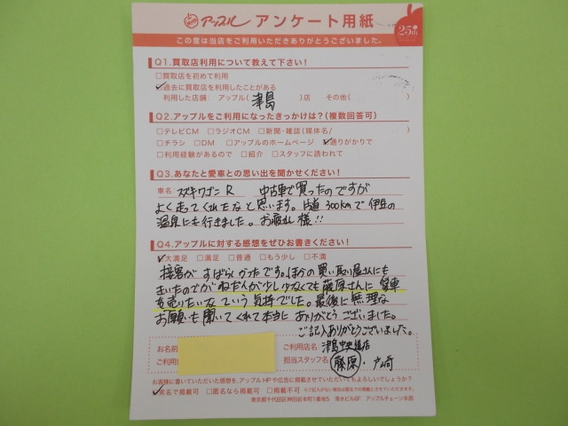 お車のご相談・ 査定だけでもOK! カンタン 入力 30秒 アップルがブランド買取始めました! お電話でも受付中! 受付時間10:00 ~ 19:00 0567-28-8151 お車のご相談・ 査定だけでもOK! カンタン 入力 30秒 アップルがブランド買取始めました! お電話でも受付中! 受付時間10:00 ~ 19:00 0567-28-8151 アップルがブランド買取始めました! お電話でも受付中! 受付時間10:00 ~ 19:00 0567-28-8151 店舗情報 在庫車 スタッフ紹介 ブログ お客様の声 キャンペーン 無料査定 click お客様の声 ご記入日: 2014/07/31 匿名様 接客がすばらしかったです。ほかの買い取り屋さんにもきいたのですが値段が少し少なくても藤原さんに愛車を売りたいなという気持ちでした。最後に無理なお願いも聞いてくれて本当にありがとうございました。 前へ 次へ お客様の声一覧を見る