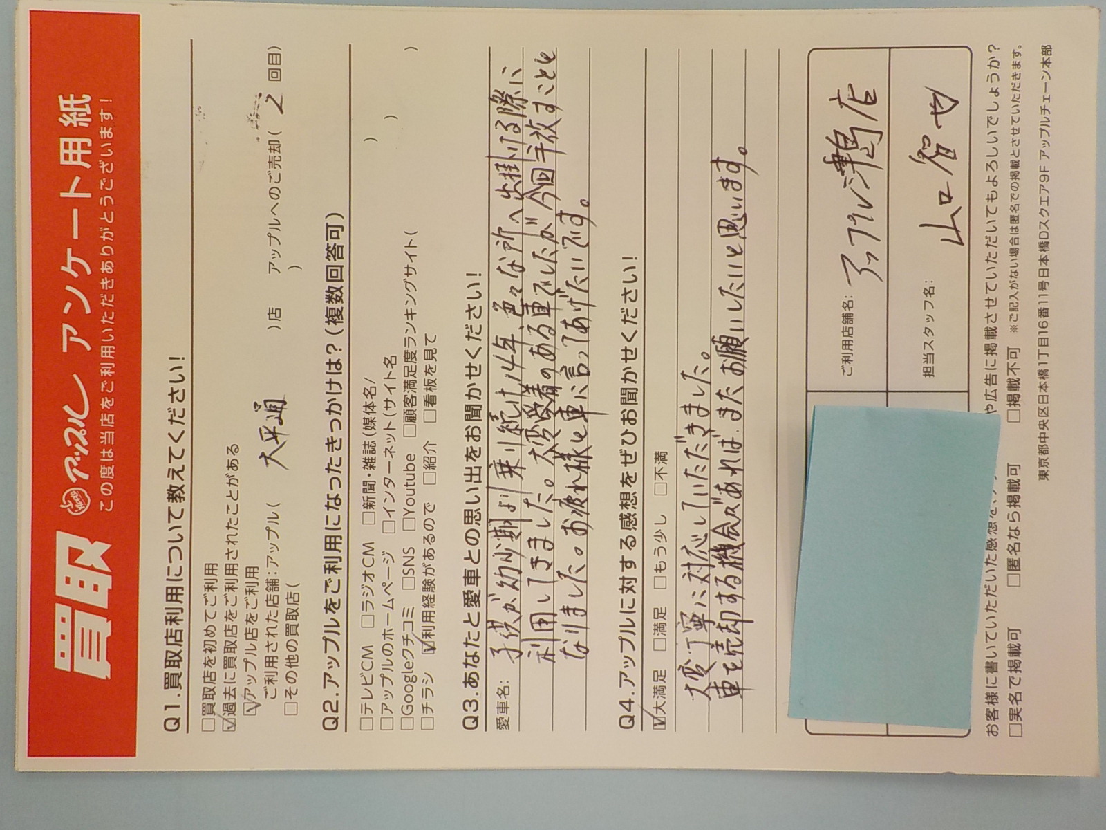 お車のご相談・ 査定だけでもOK! カンタン 入力 30秒 アップルがブランド買取始めました! お電話でも受付中! 受付時間10:00 ~ 19:00 0567-28-8151 お車のご相談・ 査定だけでもOK! カンタン 入力 30秒 アップルがブランド買取始めました! お電話でも受付中! 受付時間10:00 ~ 19:00 0567-28-8151 アップルがブランド買取始めました! お電話でも受付中! 受付時間10:00 ~ 19:00 0567-28-8151 店舗情報 在庫車 スタッフ紹介 ブログ お客様の声 キャンペーン 無料査定 click お客様の声 ご記入日: 2022/03/28 匿名(男性)様 大変丁寧に対応していただきました。車を売却する機会があればまたお願いしたいと思います。 前へ 次へ お客様の声一覧を見る