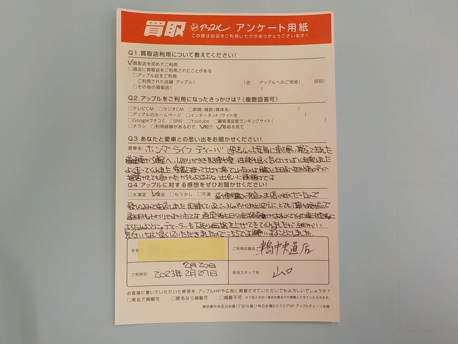 匿名(女性)様 車名:ホンダ ライフ