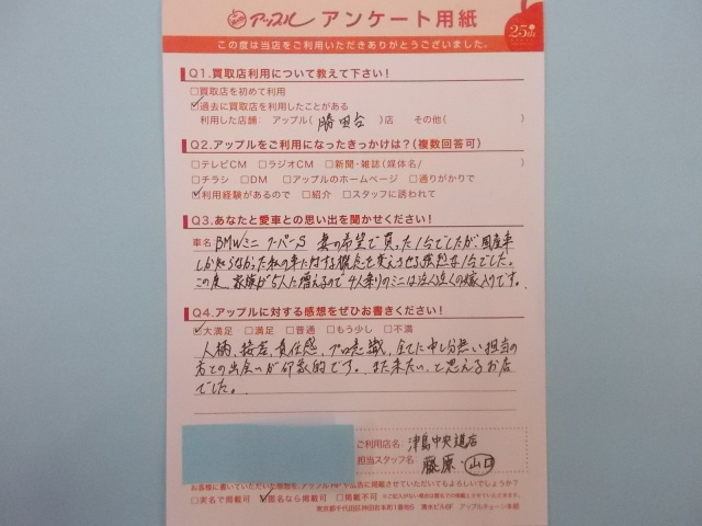 お車のご相談・ 査定だけでもOK! カンタン 入力 30秒 アップルがブランド買取始めました! お電話でも受付中! 受付時間10:00 ~ 19:00 0567-28-8151 お車のご相談・ 査定だけでもOK! カンタン 入力 30秒 アップルがブランド買取始めました! お電話でも受付中! 受付時間10:00 ~ 19:00 0567-28-8151 アップルがブランド買取始めました! お電話でも受付中! 受付時間10:00 ~ 19:00 0567-28-8151 店舗情報 在庫車 スタッフ紹介 ブログ お客様の声 キャンペーン 無料査定 click お客様の声 ご記入日: 2015/01/19 匿名様 人柄、接客、責任感、プロ意識、全てに申し分無い担当の方との出会いが印象的です。また来たいと思えるお店でした。 前へ 次へ お客様の声一覧を見る