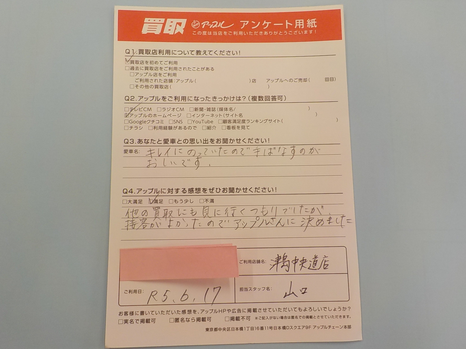 お車のご相談・ 査定だけでもOK! カンタン 入力 30秒 アップルがブランド買取始めました! お電話でも受付中! 受付時間10:00 ~ 19:00 0567-28-8151 お車のご相談・ 査定だけでもOK! カンタン 入力 30秒 アップルがブランド買取始めました! お電話でも受付中! 受付時間10:00 ~ 19:00 0567-28-8151 アップルがブランド買取始めました! お電話でも受付中! 受付時間10:00 ~ 19:00 0567-28-8151 店舗情報 在庫車 スタッフ紹介 ブログ お客様の声 キャンペーン 無料査定 click お客様の声 ご記入日: 2023/06/17 匿名様 車名:ホンダ N-BOX 他の買取にも見に行くつもりでしたが、接客がよかったのでアップルさんに決めました 前へ 次へ お客様の声一覧を見る