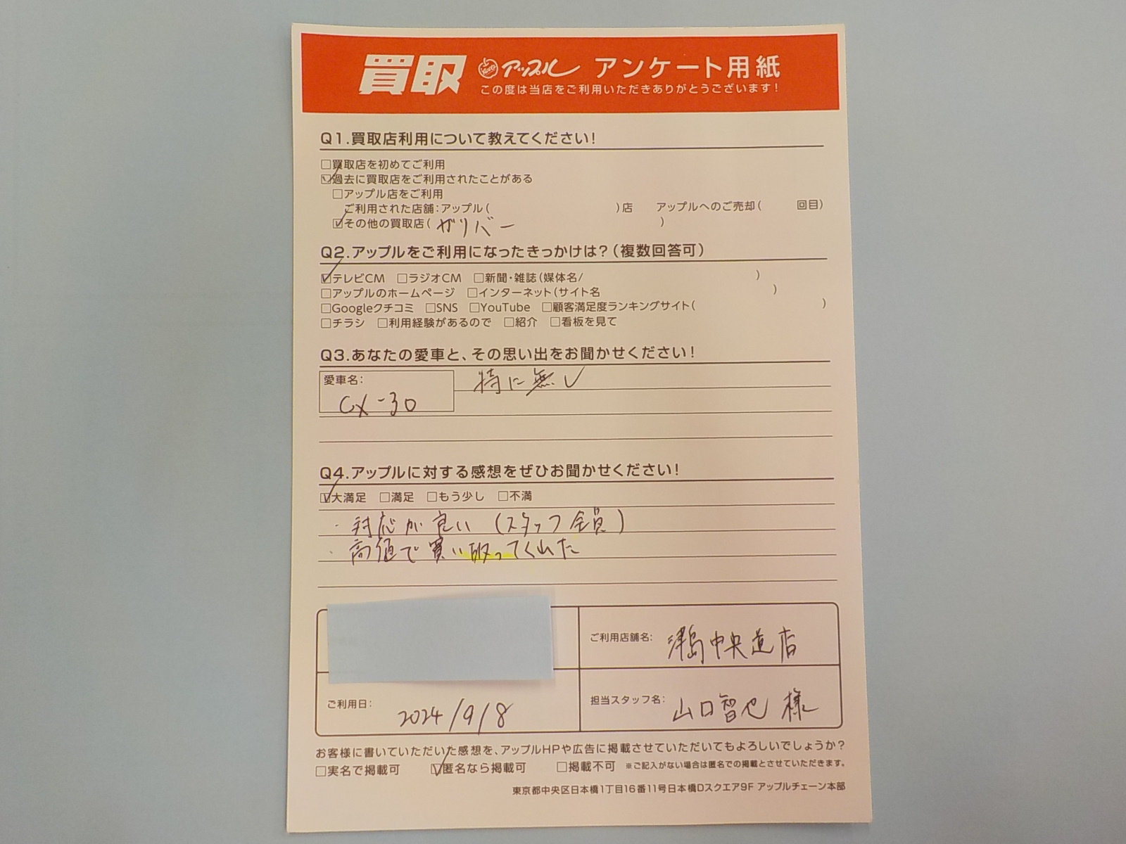 お車のご相談・ 査定だけでもOK! カンタン 入力 30秒 アップルがブランド買取始めました! お電話でも受付中! 受付時間10:00 ~ 19:00 0567-28-8151 お車のご相談・ 査定だけでもOK! カンタン 入力 30秒 アップルがブランド買取始めました! お電話でも受付中! 受付時間10:00 ~ 19:00 0567-28-8151 アップルがブランド買取始めました! お電話でも受付中! 受付時間10:00 ~ 19:00 0567-28-8151 店舗情報 在庫車 スタッフ紹介 ブログ お客様の声 キャンペーン 無料査定 click お客様の声 ご記入日: 2024/09/08 匿名(男性)様 ・対応が良い(スタッフ全員)・高値で買い取ってくれた 前へ 次へ お客様の声一覧を見る