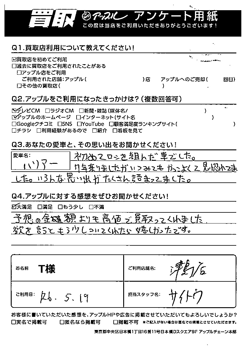 T様 車名:トヨタ ハリアー (H25年12月~のハイブリッド含む)