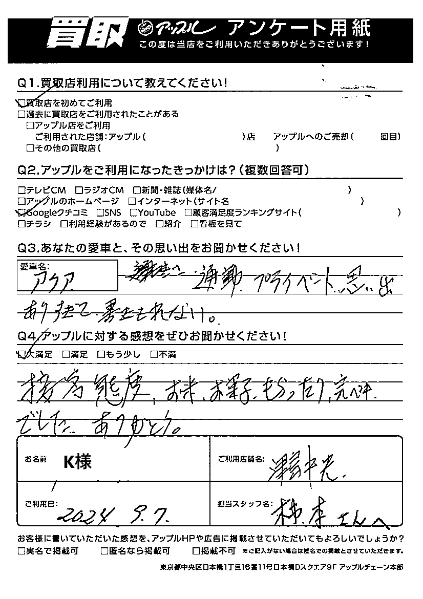 ご利用日:2024/09/07 K様