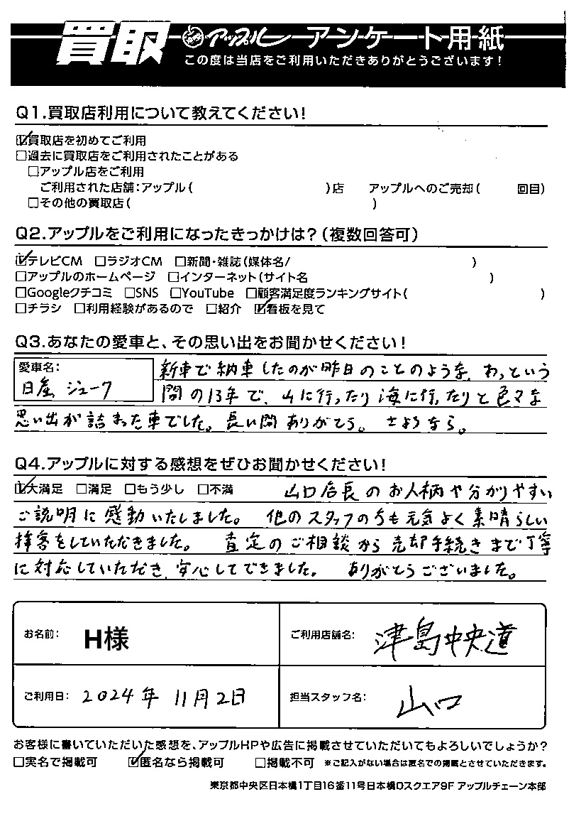 ご利用日:2024/11/02 H 様