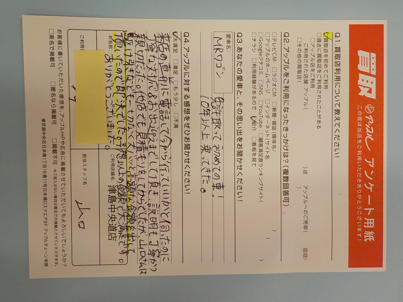 親切だった。他店でも見積もりをしてからでしたが、山口さんは