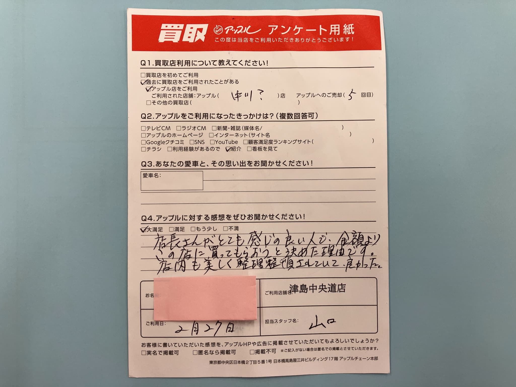 お車のご相談・ 査定だけでもOK! カンタン 入力 30秒 アップルがブランド買取始めました! お電話でも受付中! 受付時間10:00 ~ 19:00 0567-28-8151 お車のご相談・ 査定だけでもOK! カンタン 入力 30秒 アップルがブランド買取始めました! お電話でも受付中! 受付時間10:00 ~ 19:00 0567-28-8151 アップルがブランド買取始めました! お電話でも受付中! 受付時間10:00 ~ 19:00 0567-28-8151 店舗情報 在庫車 スタッフ紹介 ブログ お客様の声 キャンペーン 無料査定 click お客様の声 ご記入日: 2026/02/27 S(女性)様 店長さんがとても感じの良い人で、金額よりこの店に買ってもらおうと決めた理由です。店内も美しく整理整頓されていて良かった。 前へ 次へ お客様の声一覧を見る