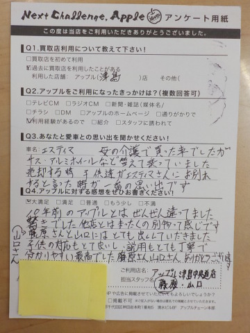 10年前のアップルとはぜんぜん違ってました。驚きでした。他店とは、まったく別物って感じです。藤原さん山口さんには、とても良くしていただきました。子供の対応もとても良いし、説明も丁寧で分かりやすい最高でした。藤原さん山口さんありがとうございます。