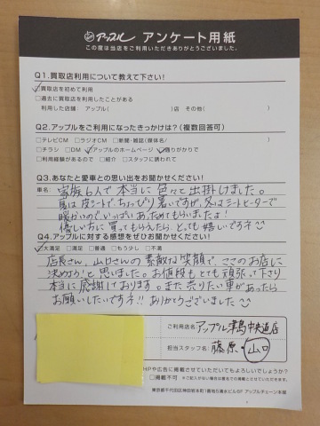 お車のご相談・ 査定だけでもOK! カンタン 入力 30秒 アップルがブランド買取始めました! お電話でも受付中! 受付時間10:00 ~ 19:00 0567-28-8151 お車のご相談・ 査定だけでもOK! カンタン 入力 30秒 アップルがブランド買取始めました! お電話でも受付中! 受付時間10:00 ~ 19:00 0567-28-8151 アップルがブランド買取始めました! お電話でも受付中! 受付時間10:00 ~ 19:00 0567-28-8151 店舗情報 在庫車 スタッフ紹介 ブログ お客様の声 キャンペーン 無料査定 click お客様の声 ご記入日: 2016/07/02 匿名様 店長さん 山口さんの素敵な笑顔でここのお店にきめようと思いました。お値段もとても頑張って下さり本当に感謝しております。また 売りたい車があったらお願いしたいですネ!!ありがとうございました(^^) 前へ 次へ お客様の声一覧を見る