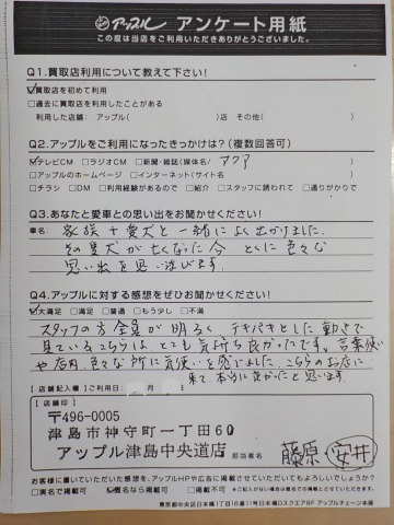 お車のご相談・ 査定だけでもOK! カンタン 入力 30秒 アップルがブランド買取始めました! お電話でも受付中! 受付時間10:00 ~ 19:00 0567-28-8151 お車のご相談・ 査定だけでもOK! カンタン 入力 30秒 アップルがブランド買取始めました! お電話でも受付中! 受付時間10:00 ~ 19:00 0567-28-8151 アップルがブランド買取始めました! お電話でも受付中! 受付時間10:00 ~ 19:00 0567-28-8151 店舗情報 在庫車 スタッフ紹介 ブログ お客様の声 キャンペーン 無料査定 click お客様の声 ご記入日: 2017/03/26 匿名様 スタッフの方全員が明るくテキパキとした動きで、見ているこちらは、とても気持ち良かったです。言葉遣いや店内、色々な所に気遣いを感じました。こちらのお店に来て本当に良かったと思います。 前へ 次へ お客様の声一覧を見る