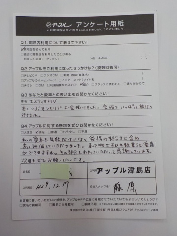 お車のご相談・ 査定だけでもOK! カンタン 入力 30秒 アップルがブランド買取始めました! お電話でも受付中! 受付時間10:00 ~ 19:00 0567-28-8151 お車のご相談・ 査定だけでもOK! カンタン 入力 30秒 アップルがブランド買取始めました! お電話でも受付中! 受付時間10:00 ~ 19:00 0567-28-8151 アップルがブランド買取始めました! お電話でも受付中! 受付時間10:00 ~ 19:00 0567-28-8151 店舗情報 在庫車 スタッフ紹介 ブログ お客様の声 キャンペーン 無料査定 click お客様の声 ご記入日: 2017/12/17 匿名様 私の愛車を年数だけでなく愛情の部分まで含め高く評価していただきました。車は物ですが年数乗ると愛着がでてきますね。その部分をわかっていただいて感謝しています。次回もぜひお願いしたいです。 前へ 次へ お客様の声一覧を見る