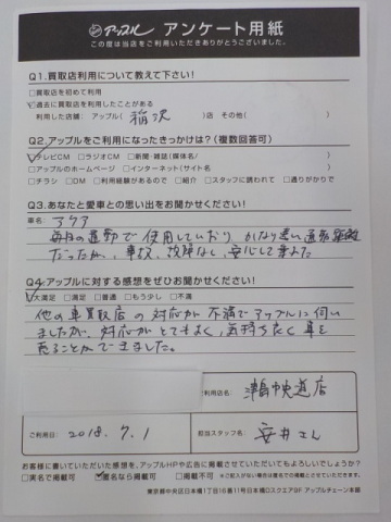 お車のご相談・ 査定だけでもOK! カンタン 入力 30秒 アップルがブランド買取始めました! お電話でも受付中! 受付時間10:00 ~ 19:00 0567-28-8151 お車のご相談・ 査定だけでもOK! カンタン 入力 30秒 アップルがブランド買取始めました! お電話でも受付中! 受付時間10:00 ~ 19:00 0567-28-8151 アップルがブランド買取始めました! お電話でも受付中! 受付時間10:00 ~ 19:00 0567-28-8151 店舗情報 在庫車 スタッフ紹介 ブログ お客様の声 キャンペーン 無料査定 click お客様の声 ご記入日: 2018/07/01 匿名様 他の車買取店の対応が不満でアップルに伺いましたが、対応がとてもよく気持ち良く車を売ることが出来ました。 前へ 次へ お客様の声一覧を見る