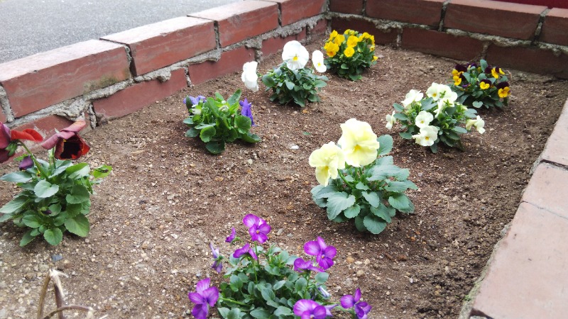お店の前の花壇にも、これからの冬にぴったりなお花、『パンジー』と『ビオラ』を植えました!