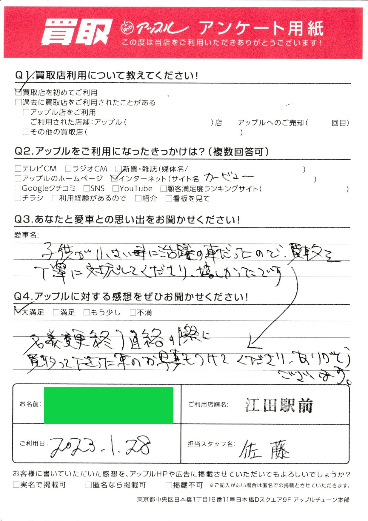 お車のご相談・ 査定だけでもOK! カンタン 入力 30秒 アップルがブランド買取始めました! お電話でも受付中! 受付時間10:00 ~ 19:00 045-912-7560 お車のご相談・ 査定だけでもOK! カンタン 入力 30秒 アップルがブランド買取始めました! お電話でも受付中! 受付時間10:00 ~ 19:00 045-912-7560 アップルがブランド買取始めました! お電話でも受付中! 受付時間10:00 ~ 19:00 045-912-7560 店舗情報 在庫車 スタッフ紹介 ブログ お客様の声 キャンペーン 無料査定 click お客様の声 ご記入日: 2023/01/28 T様 車名:トヨタ ノア 名義変更終了連絡の際に、買い取って下さった車の写真も付けてくださり、ありがとうございます。 前へ 次へ お客様の声一覧を見る
