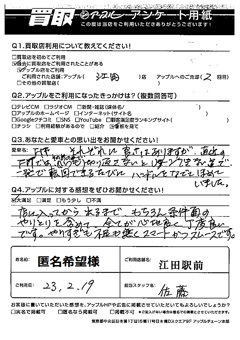 ご利用日:2023年2月19日 担当:佐藤