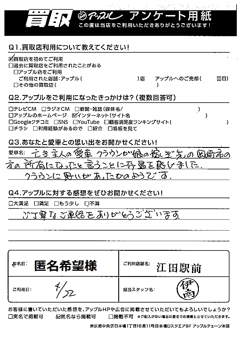 ご利用日:2023年4月22日 担当:伊南