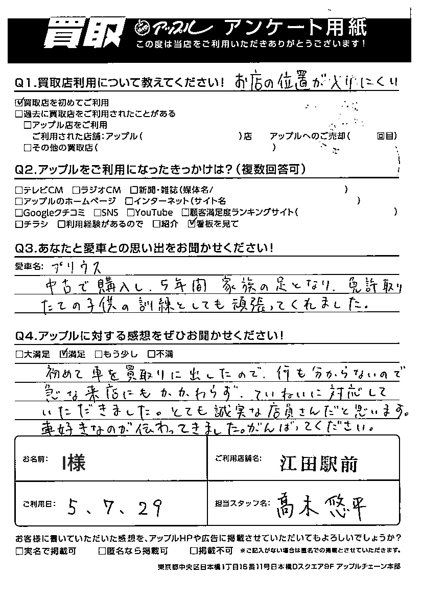 I様 車名:トヨタ プリウス(2023年3月~のPHVを含む)