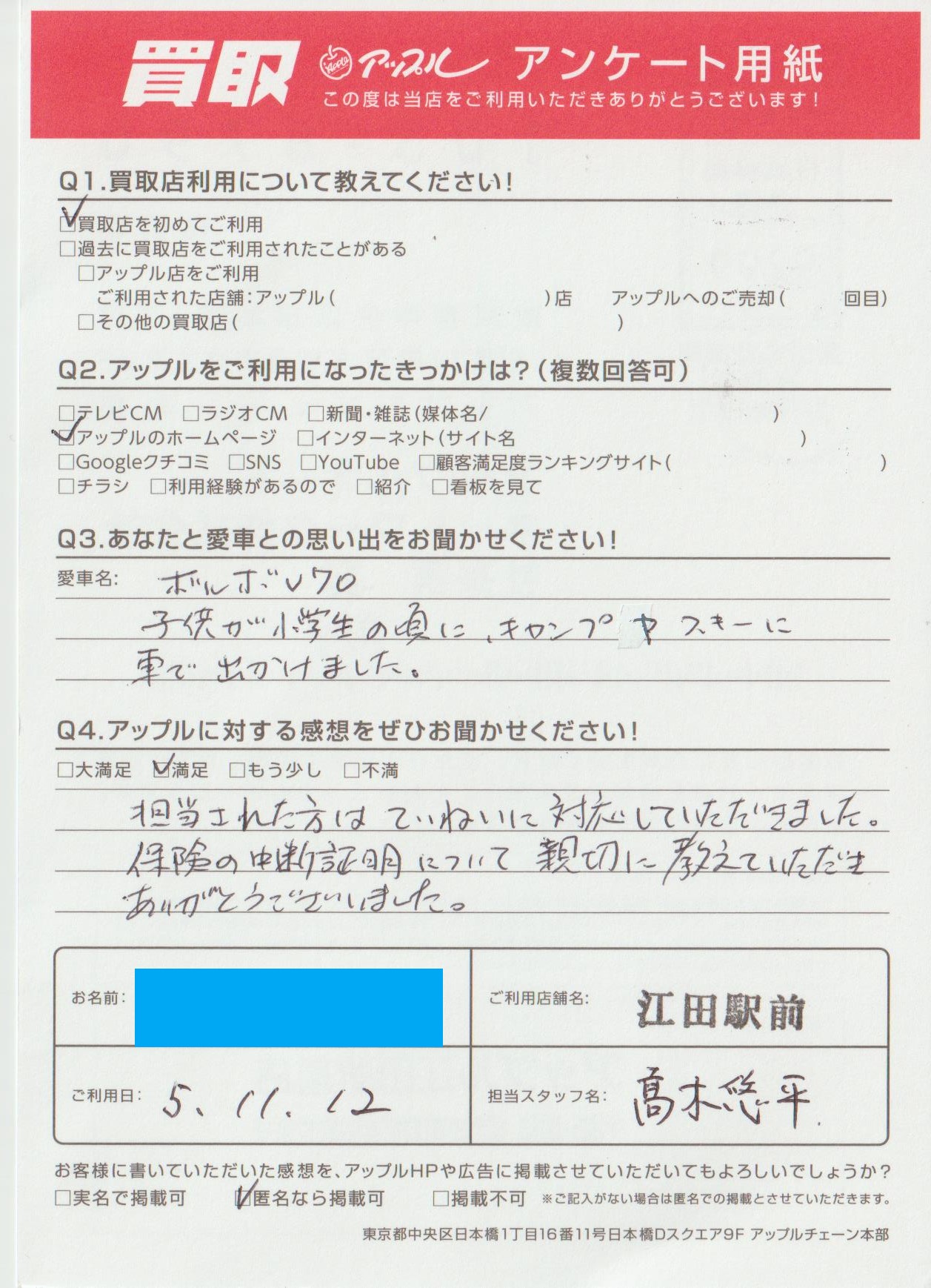 お車のご相談・ 査定だけでもOK! カンタン 入力 30秒 アップルがブランド買取始めました! お電話でも受付中! 受付時間10:00 ~ 19:00 045-912-7560 お車のご相談・ 査定だけでもOK! カンタン 入力 30秒 アップルがブランド買取始めました! お電話でも受付中! 受付時間10:00 ~ 19:00 045-912-7560 アップルがブランド買取始めました! お電話でも受付中! 受付時間10:00 ~ 19:00 045-912-7560 店舗情報 在庫車 スタッフ紹介 ブログ お客様の声 キャンペーン 無料査定 click お客様の声 ご記入日: 2023/11/12 F様 車名:ボルボ V70 担当された方は、ていねいに対応していただきました。保険の中断証明について親切におしえていただきありがとうございました。 前へ 次へ お客様の声一覧を見る