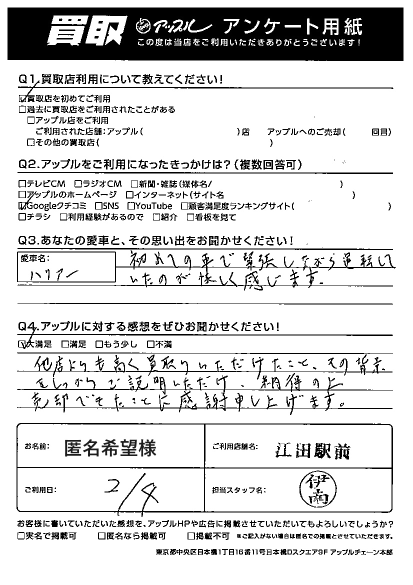 匿名希望様 車名:トヨタ ハリアー (H25年12月~のハイブリッド含む)