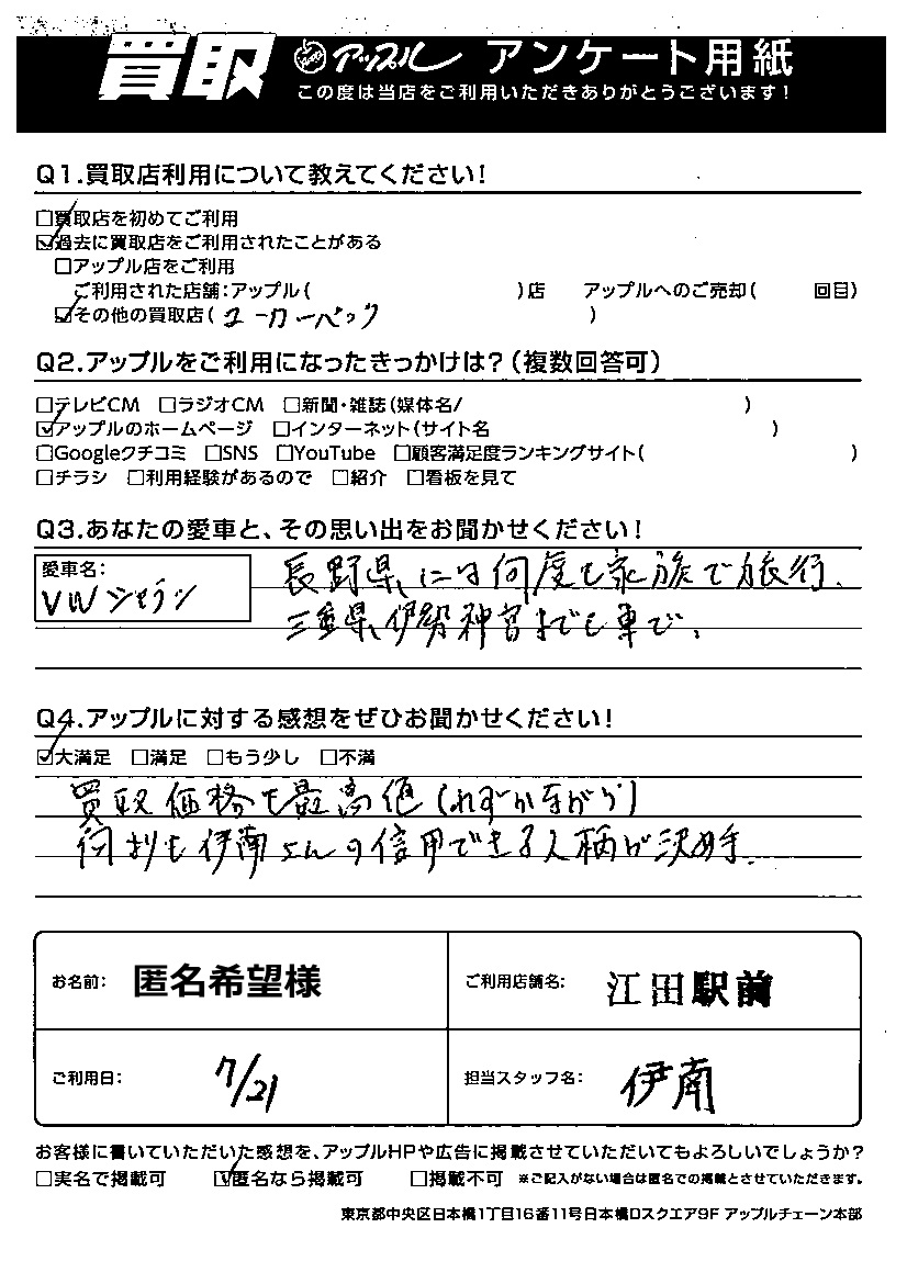 匿名希望様 車名:フォルクスワーゲン シャラン