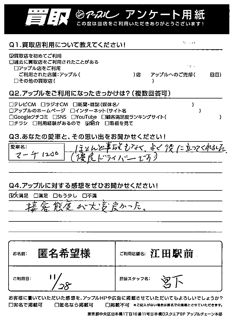 ご利用日:2024/11/28 匿名希望 様