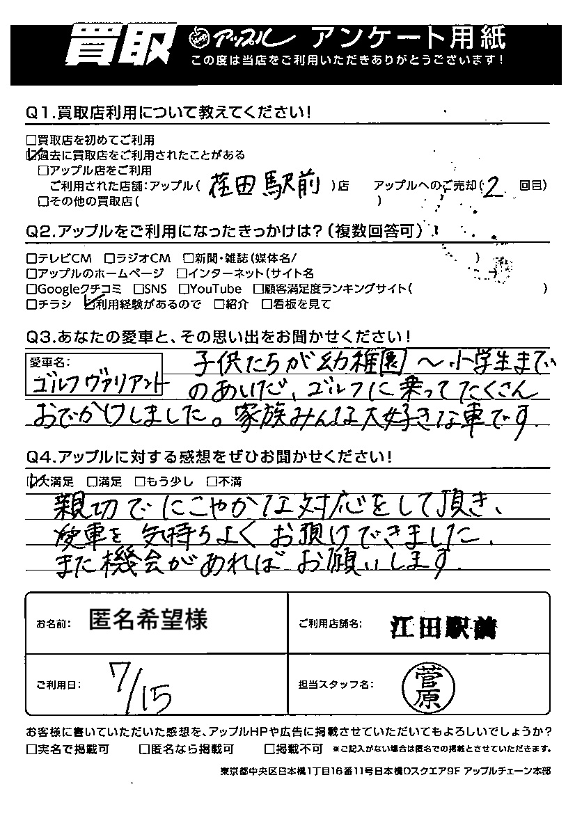 ご愛車 ゴルフヴァリアント 担当:菅原