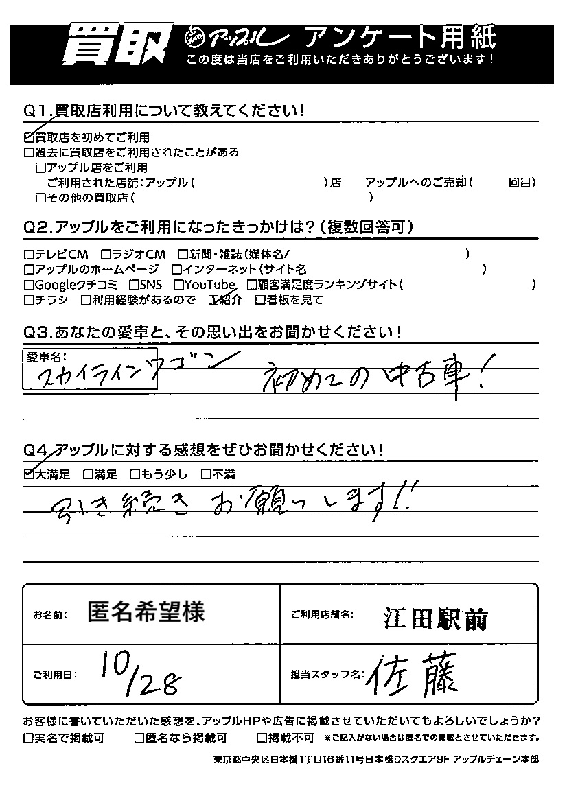A.愛車名:スカイラインワゴン 初めての中古車!