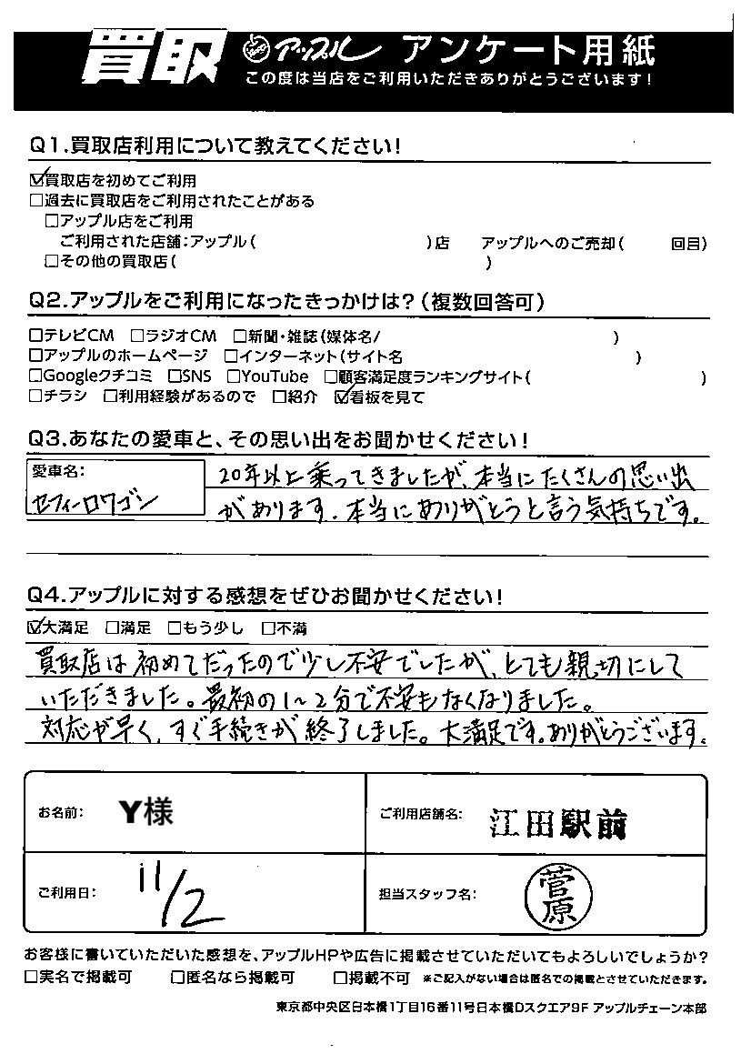 ご利用日:2025/11/02 Y 様