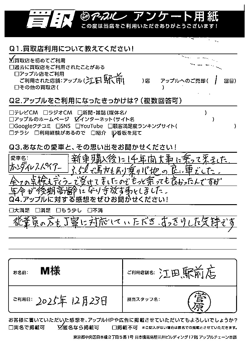 ご利用日:2025/12/23 M 様
