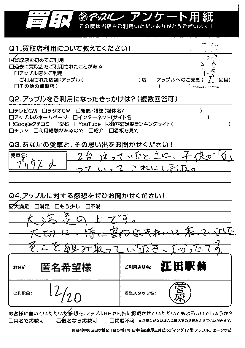 匿名希望様 車名:トヨタ プリウスα