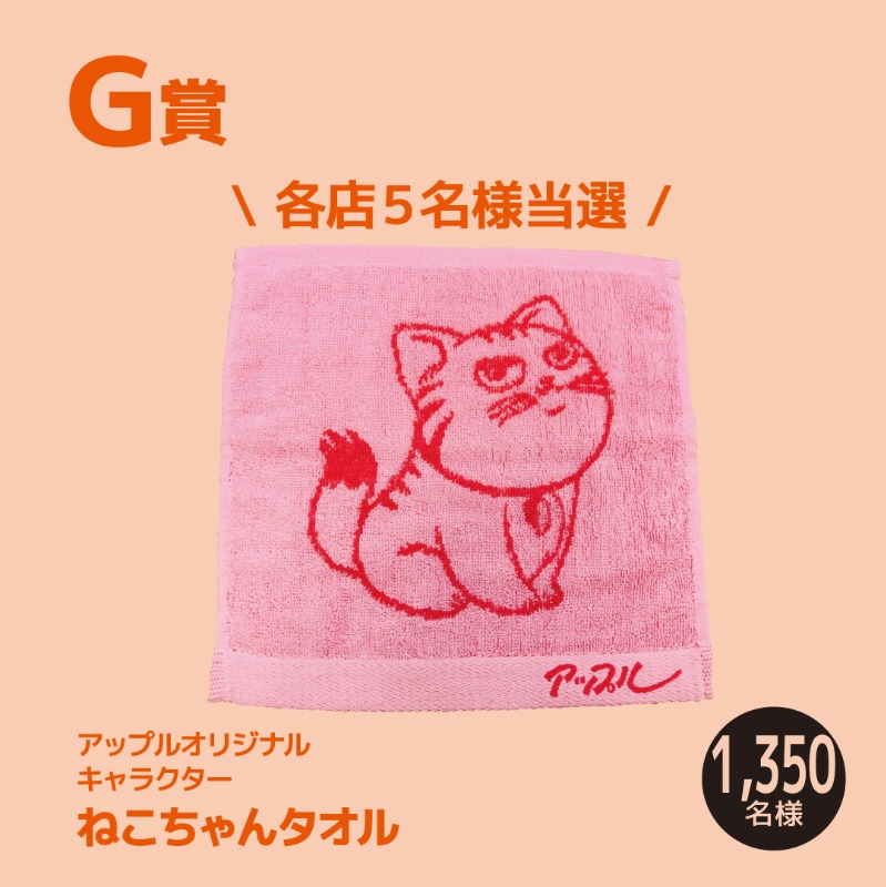 ★G賞 【アップルオリジナルキャラクター ねこちゃんタオル】1,350名様 [各店5名様当選]