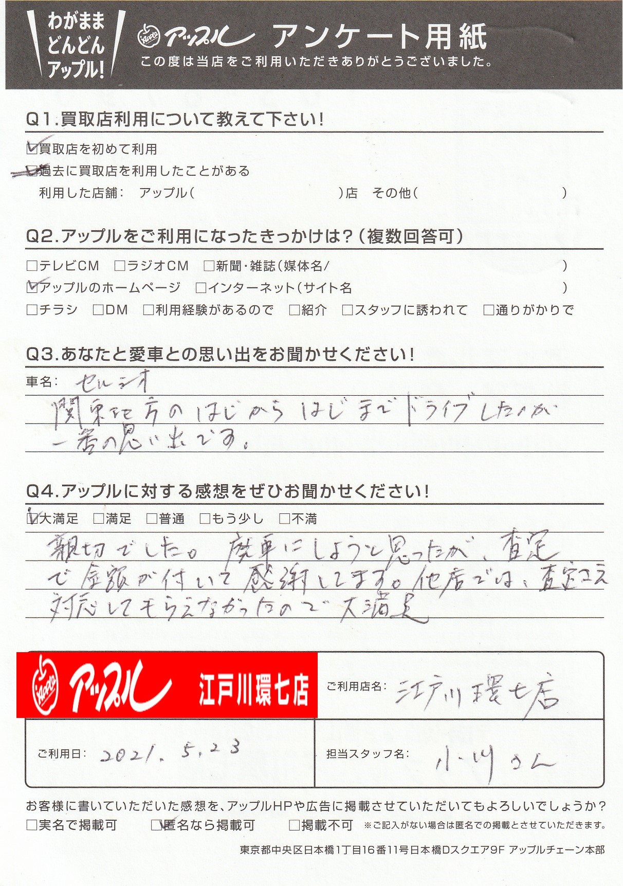 A:親切でした。廃車にしようと思ったが、査定で金額が付いて感謝しています。
