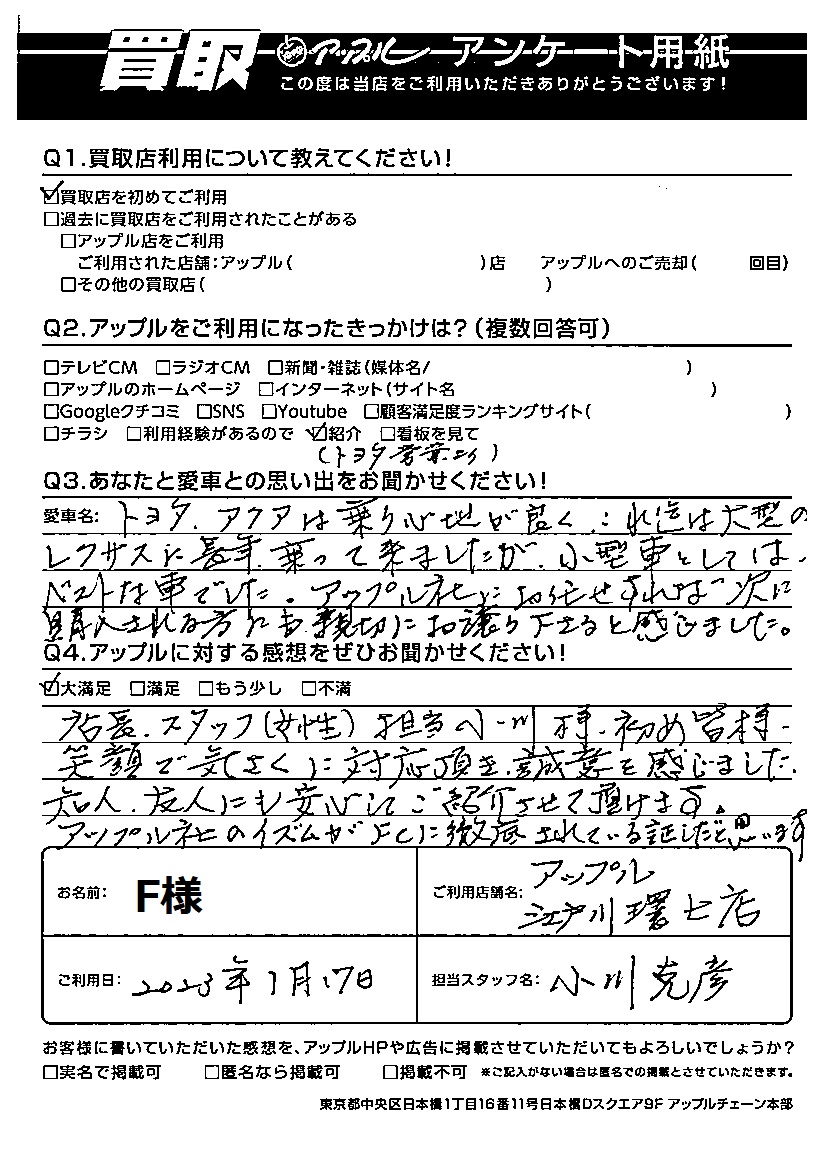 トヨタアクアは、乗り心地が良くこれ迄は大型のレクサスに長年