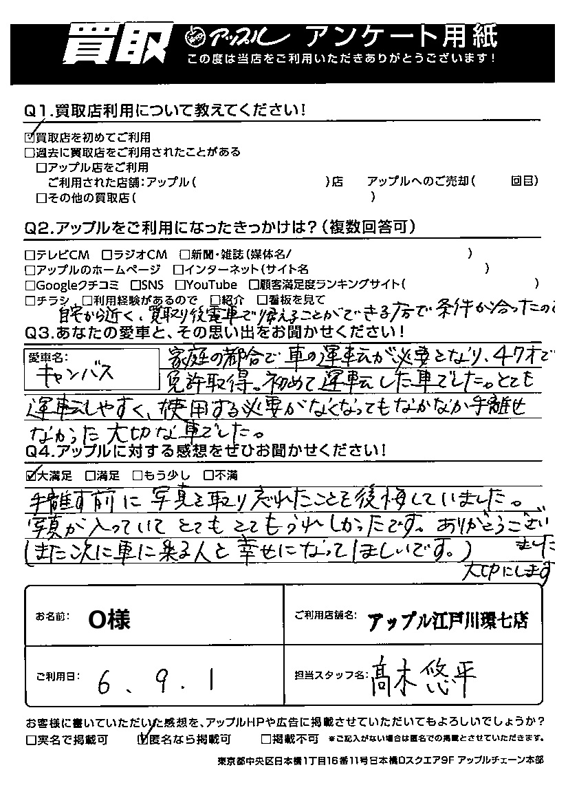 O様 車名:ダイハツ ムーヴキャンバス