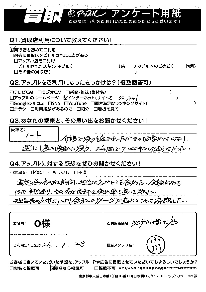 O様 車名:日産 ノート