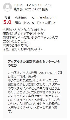 東京都板橋区 ご利用日:2021/3/30 グー買取より H様 車名:トヨタ ハリアー (H25年12月~のハイブリッド含む)